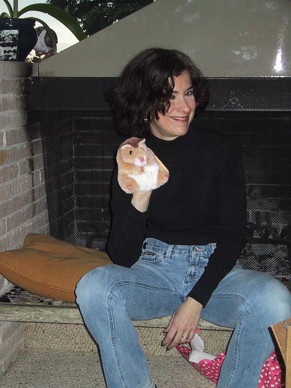 Linda playing with the hamster puppet Dagny got from Eric and Sylvia