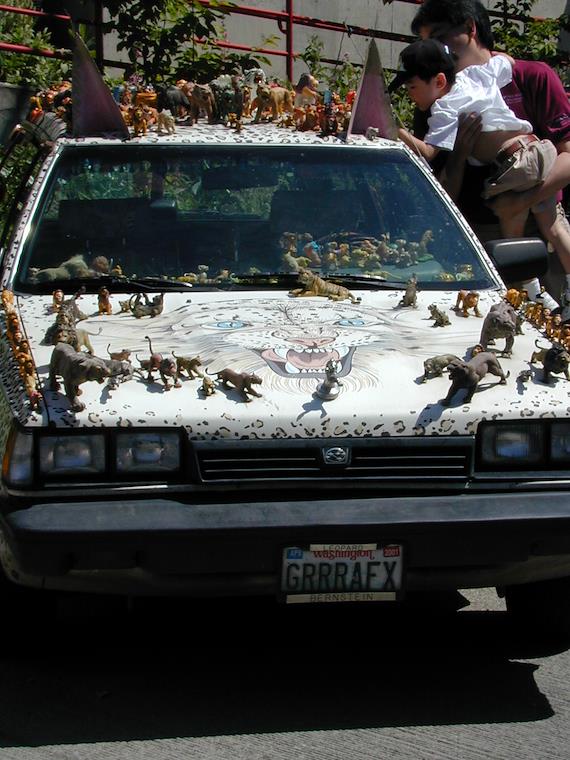 As we finished with the fair and were walking towards the parade area, we passed the Weird Car parking lot. Note the Jurrasic Park theme on this car...