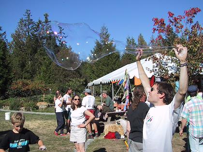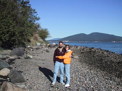 | We started the trip with a ferry from Anacortes. Here's Eric and me, close to the ferry terminal. | | When we got to the Steckler Farm on Lopez Island, the juggling festival was in full swing. Lots of interesting people! |