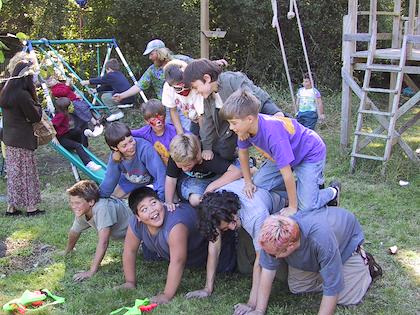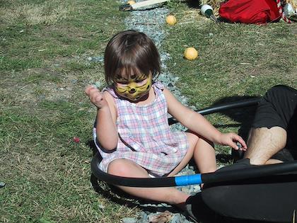 | | This little girl was pretending to be a cheetah. She came around to us, and ripped out Eric's entrails. |