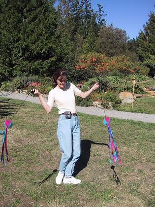 | This is me trying out what's called "poi", which is basically a set of balls on a string that you swing symmetrically. | | Rope twirling |