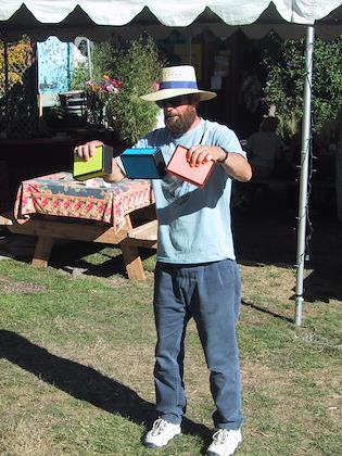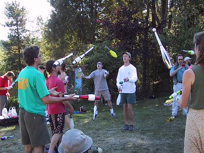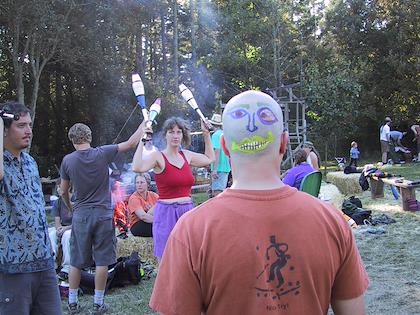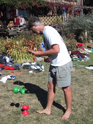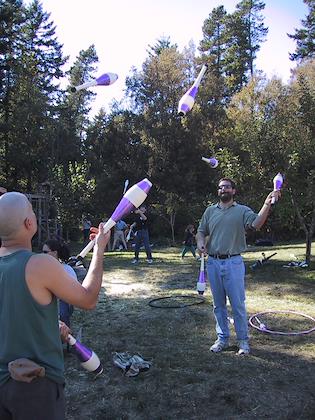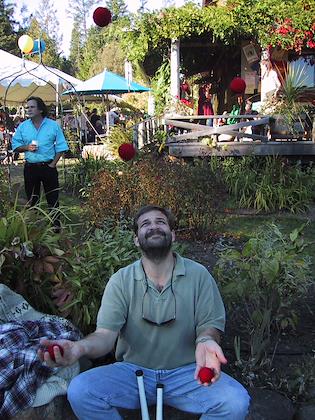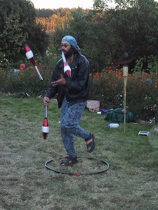 | There was lots of club passing going on at the festival. | | This guy was a little eccentric, but an amazingly good juggler. He had 3 clubs down to an art--very graceful, like a dance. Too bad we didn't have a video! |