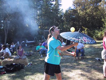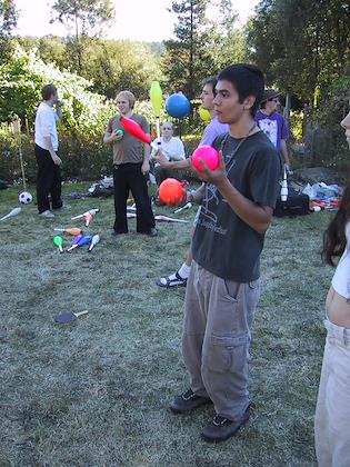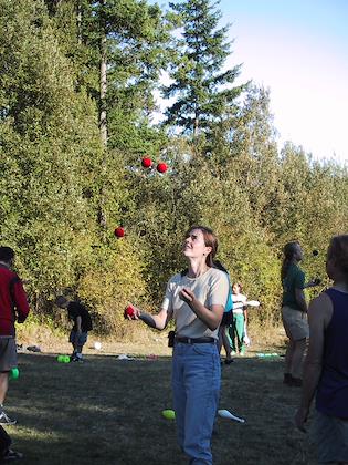 | There was, of course, lots of juggling going on. Here's me, concentrating on juggling 5 balls. | | I was REALLY concentrating... |