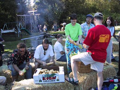 | Eric and I took a long walk around Hummel Lake before dinner. | | Here's folks preparing the corn-on-the-cob for dinner. |