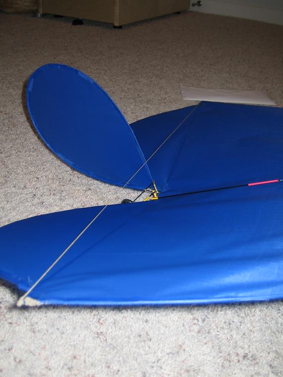 Some kevlar thread is used to give the wing some dihedral. This makes the plane more stable in flight.