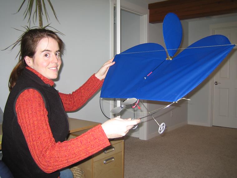 Here is the complete plane, modeled by my lovely wife, Sylvia.