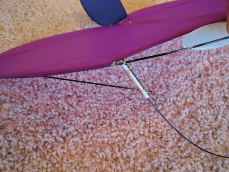 The landing gear can easily be attached by simply inserting the carbon rod into the sleeve. This rod acts both as a landing gear, and supplies protection for the prop. Plus, the plane is effectively flat for travel when removed.